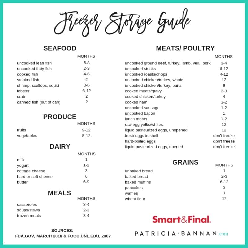 The challenge with a packed freezer, even an organized one, is it can be hard to know what to eat your way through first. Print a “discard by” freezer guide and keep it handy, like this one, so you always know which foods will perish first.